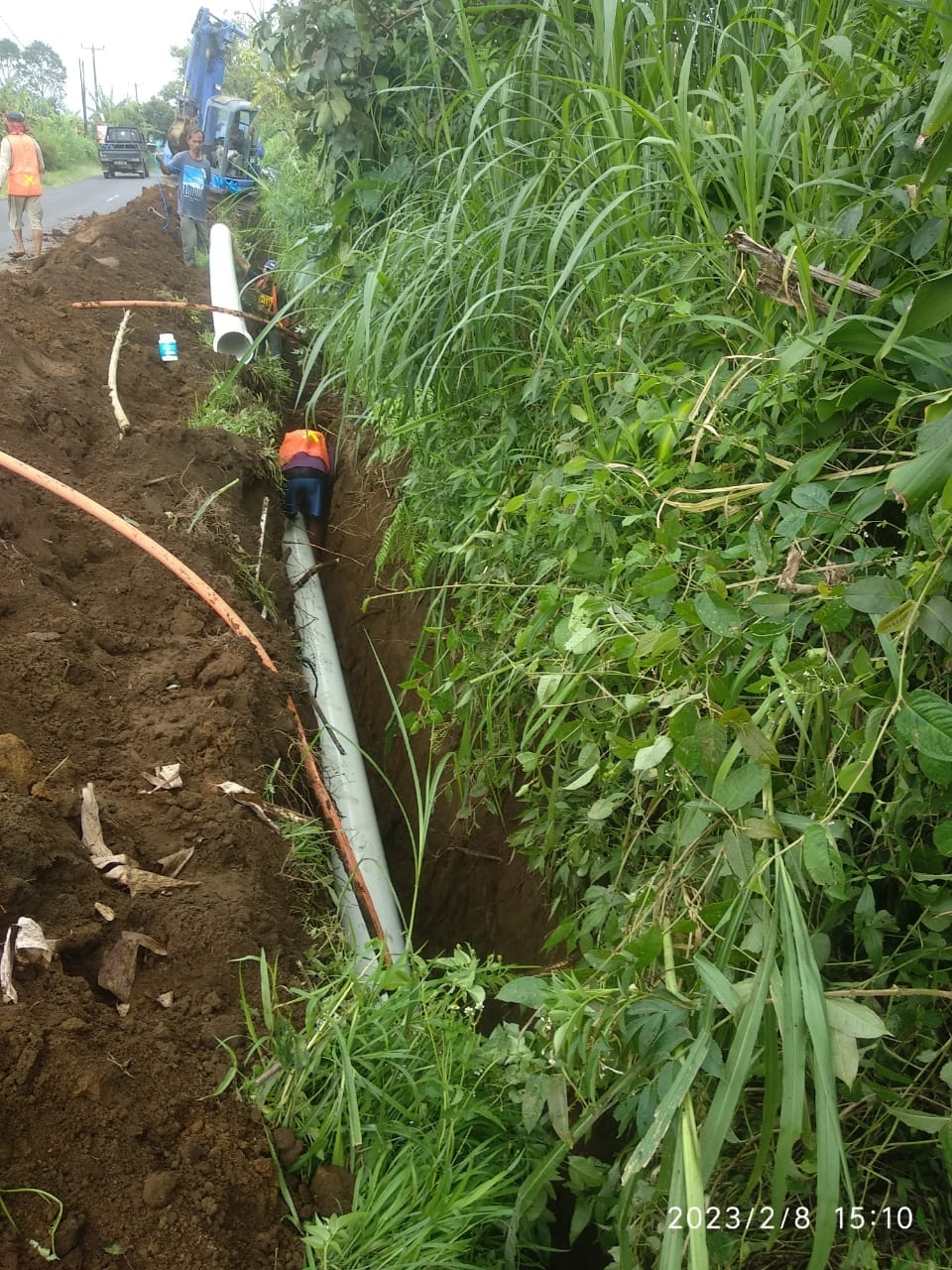 Pergantian Pipa PVC O 250 mm Exoplas PN 10 untuk Optimalisasi Jaringan Pipa Transmisi Sumber Mata Air Pebini Catur, Kintamani Sudah Mulai di Kerjakan.
